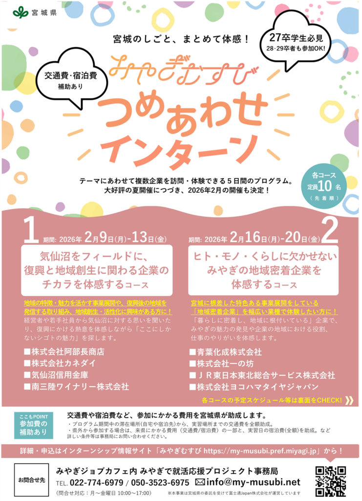 参加者募集|みやぎむすびつめあわせインターン(2026年春開催)