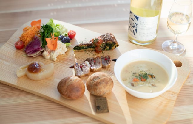 - ワイナリー特製プレートランチを食べられます(希望者・有料)